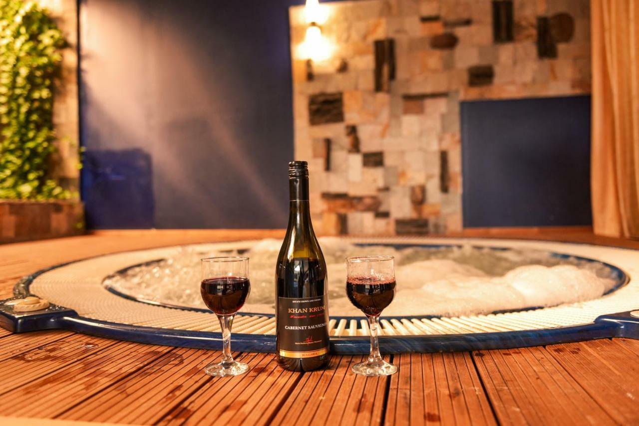 The restaurant’s rustic dining area has an open fireplace. Bulgarian and European cuisine, as well as fine wines are served there.